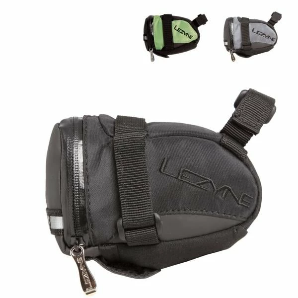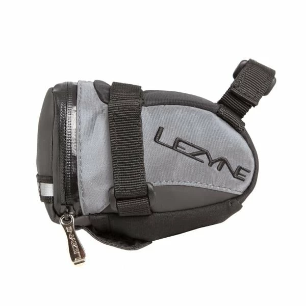Velcro straps attach to saddle rails and seat post. Has a water resistant zipper and reflective tail light loop for any weather conditions.